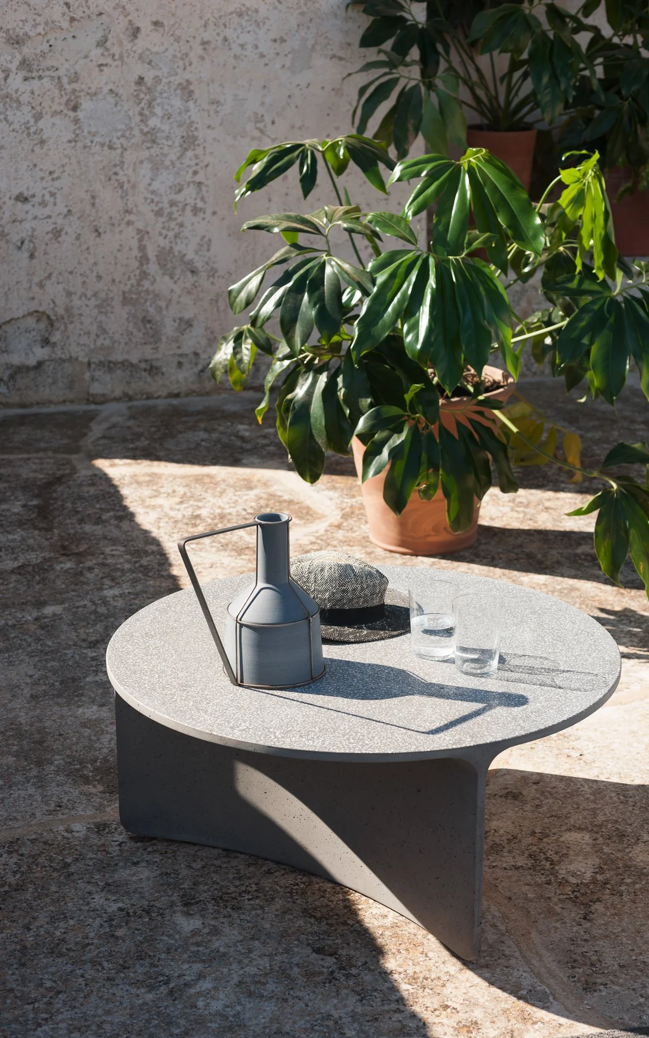 ASPIC is a collection of concrete tables defined by curved, monolithic forms and a textured, exposed-aggregate finish. The series includes two round tables, a larger oval version and a dining table. Designed for outdoor spaces, the tables can be grouped at different heights and paired with seating or poufs from other RODA collections. The dining model is available in three mineral-inspired colors — Orange, Green and Mole — made using a durable mix of natural minerals and organic fibers.