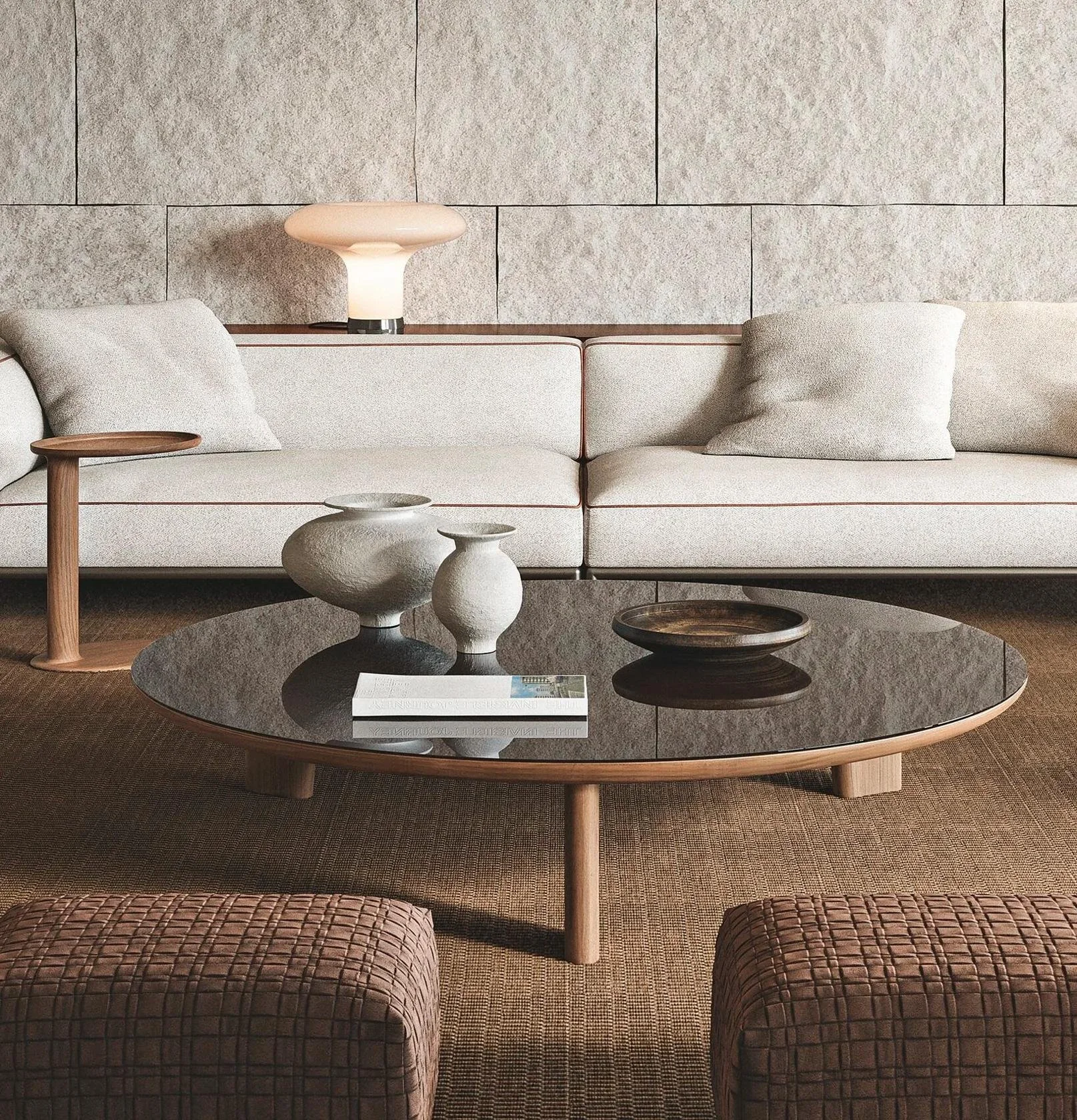 Arnold is a family of coffee, dining, and side tables built around a clean, single-material concept. Tabletops are available in veneered wood or back-painted glass in a palette of refined colors. With multiple shapes, sizes and finishes, Arnold pairs easily with any seating in the Flexform collection while adding a subtle architectural presence.